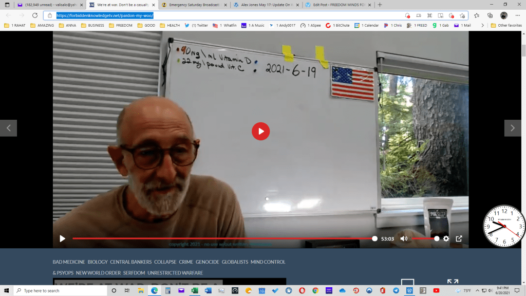 “So when they start pumping the audit and throwing Biden under the bus – and Harris and all of that – then you know that the next thing that’s going to break out is the reality of the ‘vaxxed and the spiked’, because that will be one of the last things that they’ll use as a distraction, trying to whip us up, totally diverted away from the fact that we’ve been poisoned…Humanity has been poisoned by a very small part of humanity…