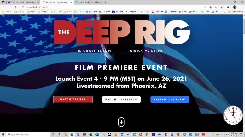 Patrick Byrne Jun 21, 2021 at 10:44pm🚨 UPDATE: Now you can buy tickets for “The Deep Rig” Movie Premiere Event! June 26, 2021 4pm to 9pm (MST) Dream City Church 13613 N. Cave Creek Rd Phoenix, Arizona Tickets: Watch Livestream Online: https://www.crowdcast.io/e/thedeeprig/register Attend Live Event in Phoenix, AZ: https://www.eventbrite.com/e/the-deep-rig-movie-premier-tickets-159921835515 Important: The live event in Phoenix has a cap of 3,200 attendees, and the livestream will cap at 30,000 viewers. So buy your ticket now to avoid disappointment. If you miss out on the livestream, a playback of the event will be available for sale at https://TheDeepRig.Movie shortly after the event. There will also be local playback events around the country, hosted by Patriot groups from June 26 until August 01, 2021. The unprecedented censorship this film is experiencing means we are relying on The People to show the film in their local theaters, meeting rooms, and places of worship. To host a viewing of the livestream, register your interest at https://TheDeepRig.Movie . Together, We Win! WATCH MOVIE CLIPS: https://patrickbyrne.locals.com/content/videos/playlists/797/oldest “The Deep Rig” Movie is based on actual events and the Best Selling Book, “The Deep Rig: How Election Fraud Cost Donald J. Trump the White House, By a Man Who did not Vote for Him” by Patrick M. Byrne. Produced by: Steve Lucescu Directed by: Roger R. Richards Starring: General Michael Flynn and Patrick M. Byrne Featuring: Joseph Flynn, Jesse Binnall, Jovan Hutton Pulitzer, Bobby Piton, Col. Phil Waldron, Matthew S. DePerno, and Joe Oltmann Patrick Byrne is donating 100% of his profits to TheAmericaProject.com. The America Project was founded to advance freedom and preserve the American way of life.