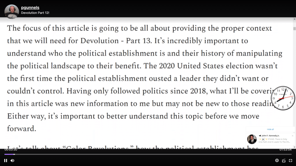 Amazing story with names of the dangerous people who created all the color revolutions. He tells how these clowns are on Durhams upcoming list of indictments. This tells exactly how all these people are involved and how Trump had to fight them to ensure a win for all of us. The Devolution is just one aspect of Trumps plan to save America.